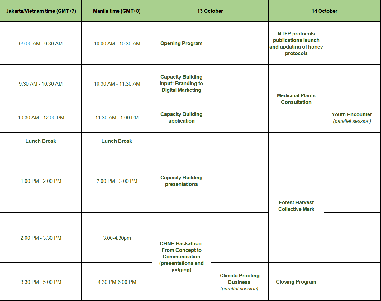 So as to maintain the momemtum generated by the first CBNE Forum Event in June 2021, NTFP-EP organized a smaller, more focused two-day event on October 13-14, 2021.